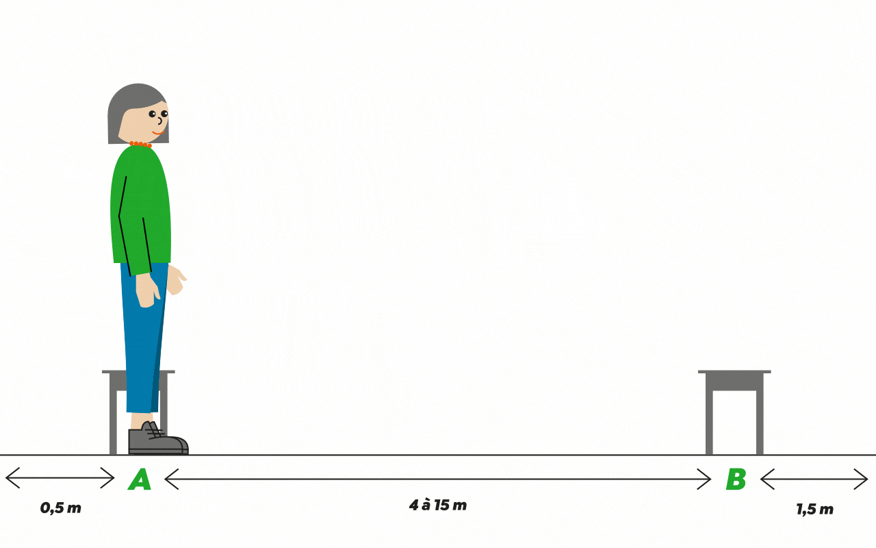 Veillez à avoir un appui à portée de main dont vous pourrez faire usage si nécessaire. Déplacez maintenant le poids de votre corps sur une jambe et levez l’autre pied. Maintenez cette position aussi longtemps que possible et servez-vous d’une montre, de votre téléphone portable ou de notre guide audio pour vous chronométrer. Testez les deux jambes l’une après l’autre et saisissez les résultats.